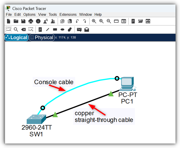 A console connection is a direct link between your computer and a Cisco switch or router using a console cable. It lets you open the CLI and configure the device even if it has no IP address or network connection.