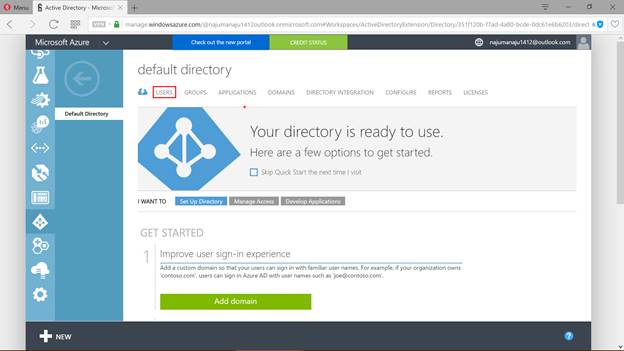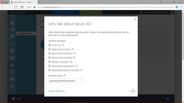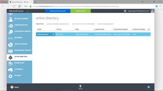 Click on the Default Directory now. You will be getting a window like this. If this is the first time you are going to use the Active Directory, click on the tick mark accepting it to talk about the Active Directory.