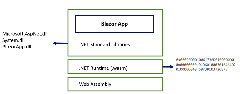 Wouldn't it be great if we could run C# in a browser. It works by having a .NET runtime that is compiled into WebAssembly bytecode. This .NET runtime runs in the browser and can run whatever .NET assemblies, so DLLs, that you give it, including C# code that we create in a Blazor application.