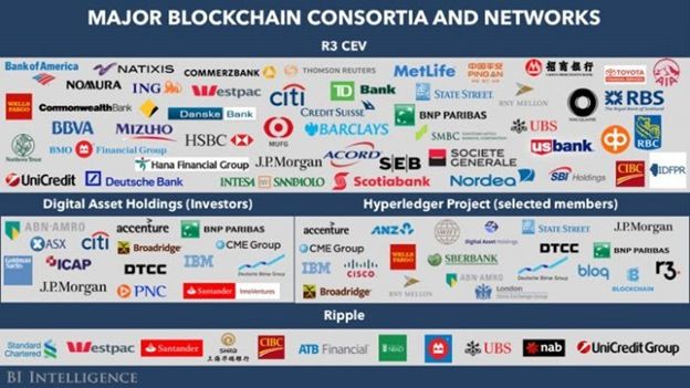 Banking is one of the industries that is leading the blockchain innovation. The following image from BI shows major banks and financial institutions involved in blockchain. Supply chain management, global logistics and shipping, healthcare and pharma, and even governments are now exploring blockchain implementations.