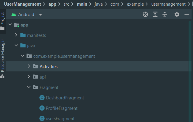 After adding the Bottom Navigation Bar, we will want to perform an action by clicking the three bottom navigation bar buttons. Here we will create a fragment for each of the three navigation buttons to display the corresponding fragment upon clicking the navigation. Now that we have the three bottom navigation, we will create three fragments: dashboard, users, and profile. To create a Fragment, click on the app(right-click) -> New -> Fragment -> Fragment (Blank). Name the fragment Dashbord_Fragment and the corresponding XML file fragment_dashbord. To keep things simple, all three of the fragments should just contain a TextView. However, we can tweak this as we want it to be in the app. This is what the fragment_dashbord.xml looks like after adding a TextView: