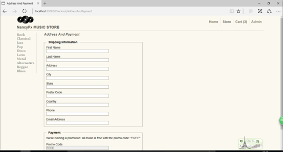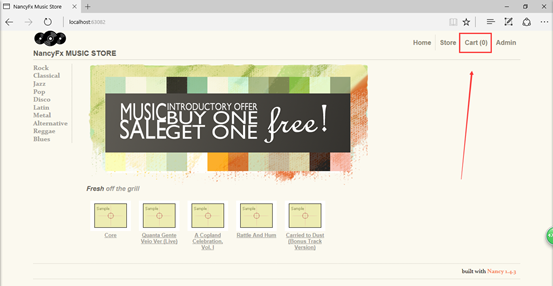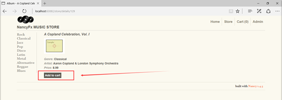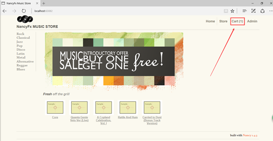When we add some albums to our shopping cart successfully, the quantity of the shopping cart will change at once and go back to the index page of the music store.