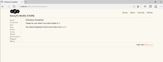 After creating the order and its details successfully, we will redirect to the complete page. This page will show us the order number.