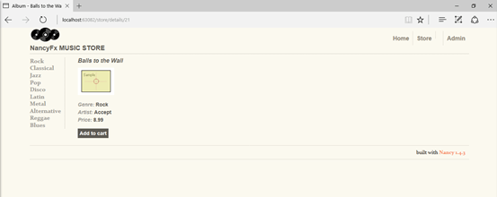 It's very simple. Just show little information of the album. Let's run the Application and click one of the top selling albums in the index page. Then, you can see something like the screenshot, as shown below.