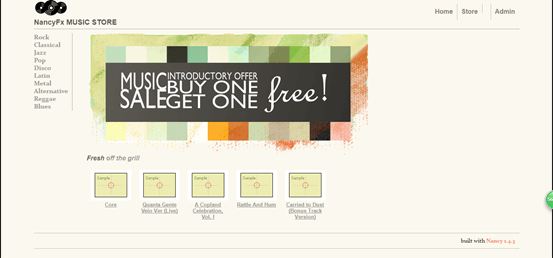To be the first, adding a HomeModule class in the Modules folder is to show the index page, the index page shows us the top five selling albums and the categories of albums.