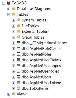 Create a database and tables by using the “update-database” command in the package manager console. Use the Microsoft SQL Server object explorer to see the created database and tables.