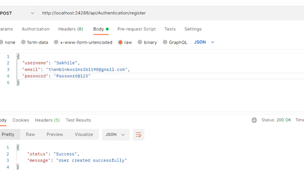 return Ok(new Response { Status = "Success", Message = "User created successfully" });