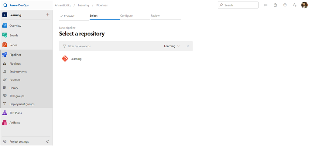 Login to your DevOps accounts and create a new project with the name Learning App. Open this newly created project and add source code to this project repo. You can also use the existing source code that I mention on top of this article. I already have the source code in this project.