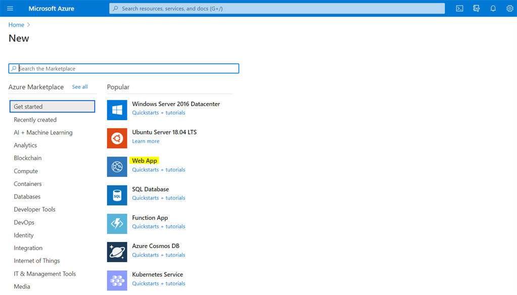 If you are creating a web app service through the Azure portal then click on create a resource and choose web app.