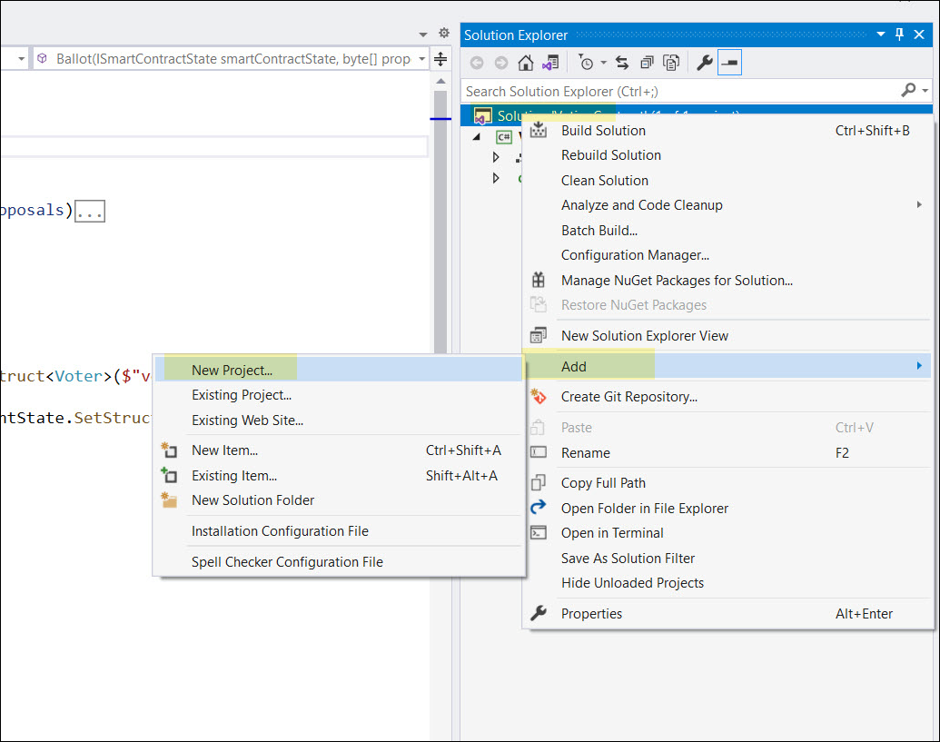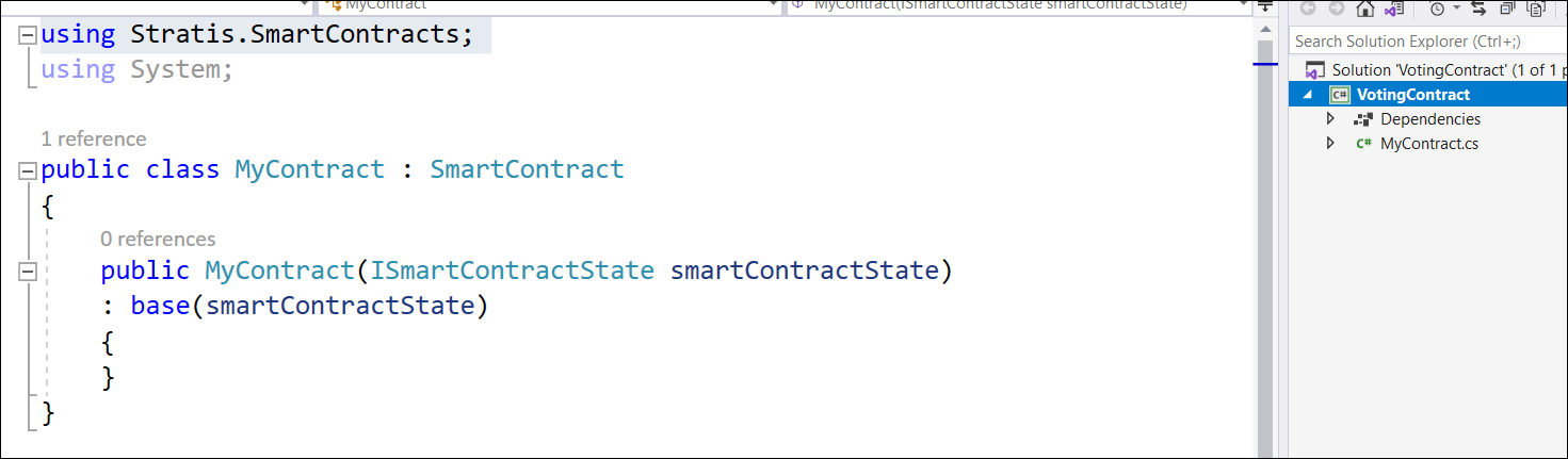 Create a new project with the Stratis template. I’ve created with the name “VotingContract”. Initially, the project solution looks like the below screen.