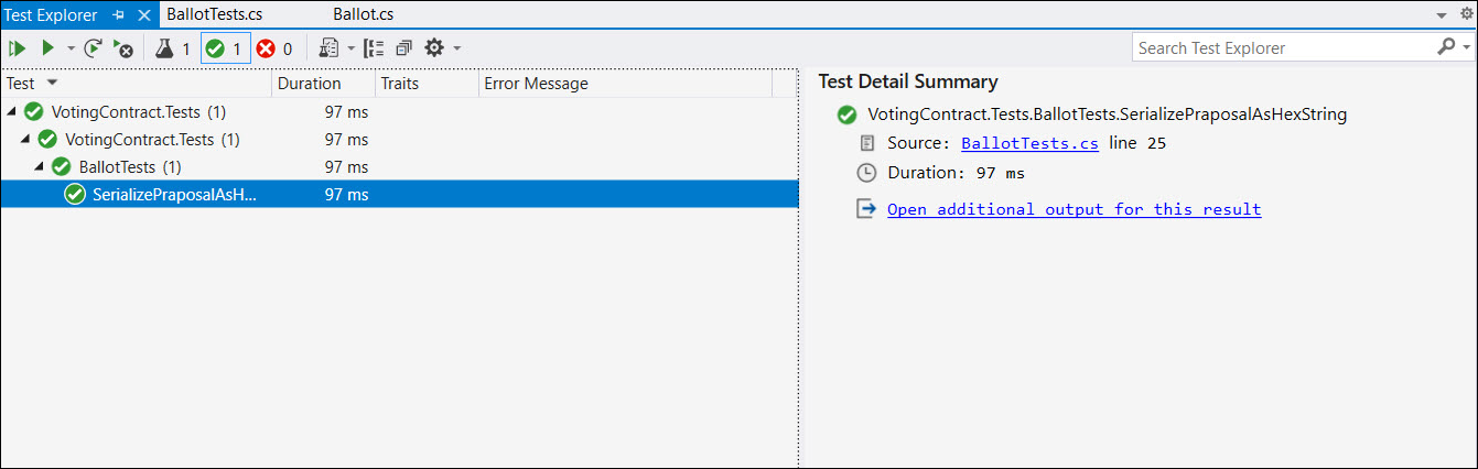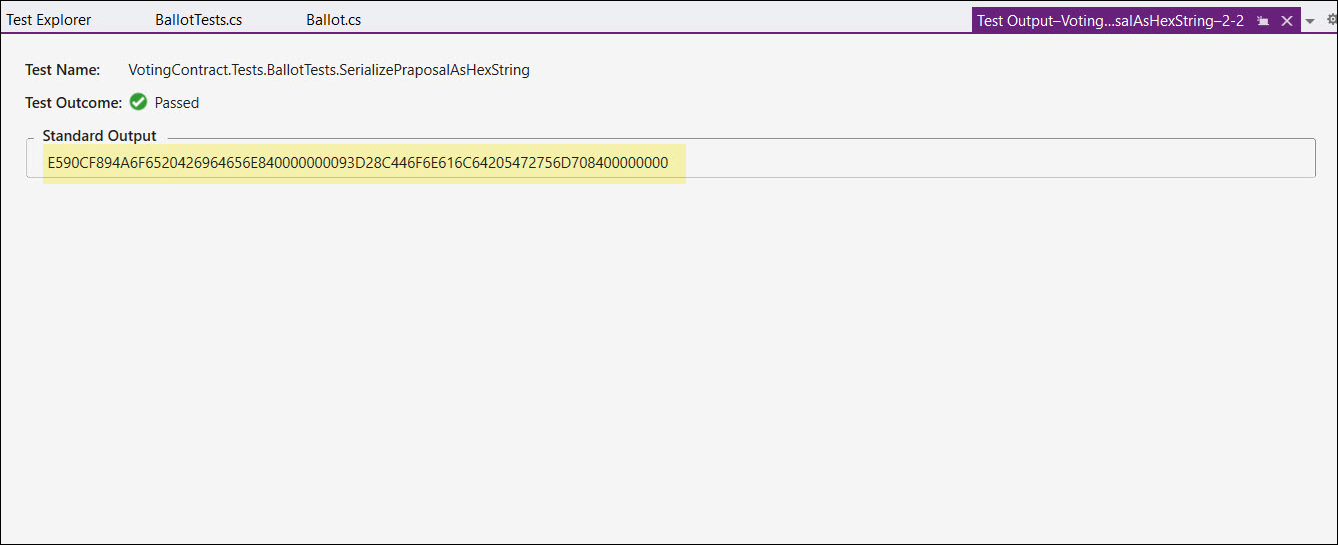 We will pass a list of proposals while deploying the contract. So, that needs to be stored as well. So, let’s take the byte array as a parameter in the constructor, and then serialize it to an array of the proposal. At the time of writing this article, it is not allowed to pass struct array as a parameter to the Smart Contract directly.
