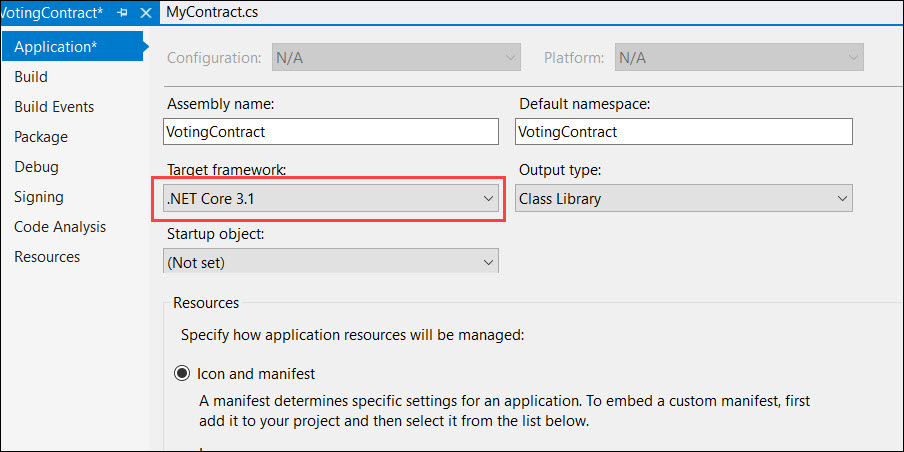 Next, change the targeted framework to 3.1. To do that, go to project properties > Applications > Find Target framework dropdown. This will help us to avoid packages version issues later while development.