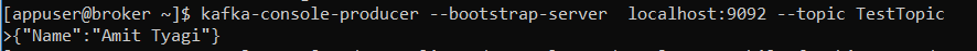 - kafka-console-producer --bootstrap-server localhost:9092 --topic TestTopic