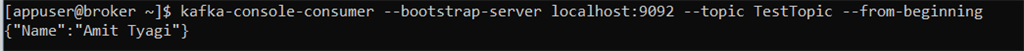 Now we can check if our topic “TestTopic” has some saved message. To READ VALUE FROM KAFKA TOPIC, use the below command.