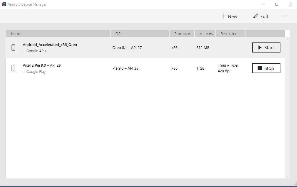Here, you see I have added the “Pixel Pie 9.0- API 28” emulator. If there are issues when running an application using the emulator, click on the following.