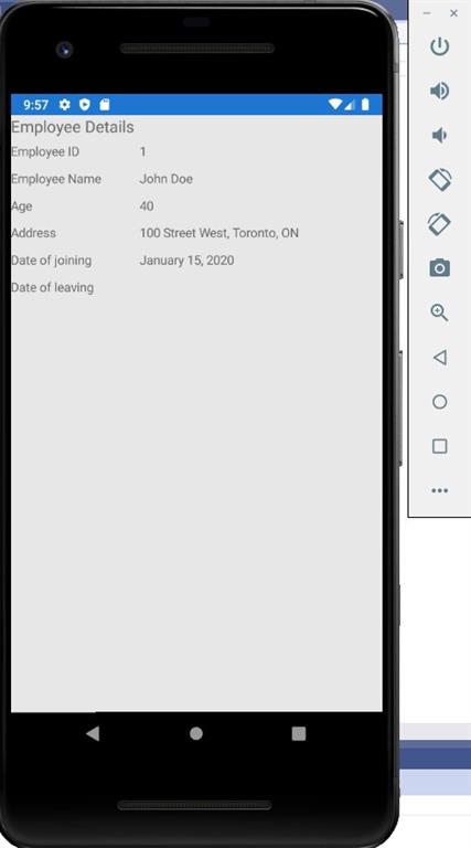 Now when we run the application from the “EmployeeMobile.Android” project we see the application in the Android emulator: