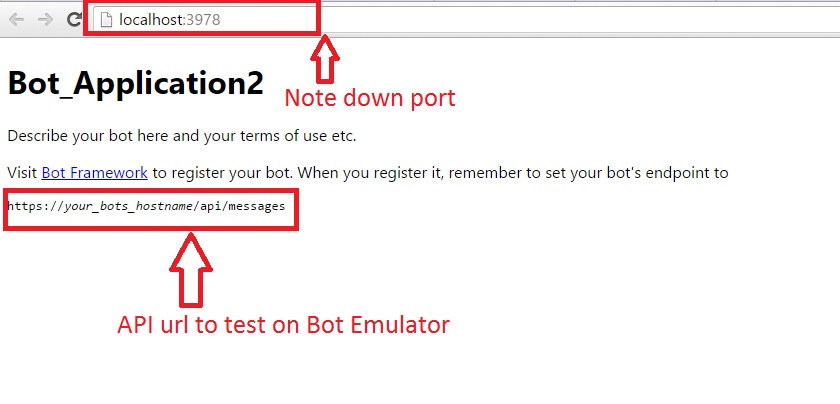 - URL - You have to mention your application url with port before api/messages.