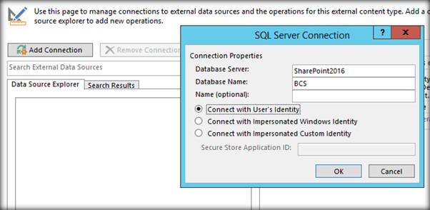 Ensure that you create a primary key in the table as it will act as the connection link between SharePoint List and SQL Server table. Here, it will be ‘Name’. If Primary key is not set, we will get the below error while creating BCS connection.