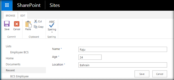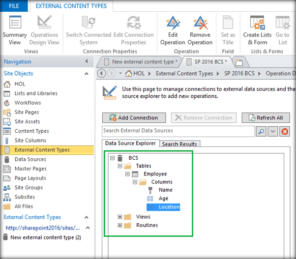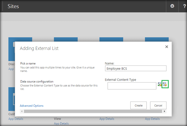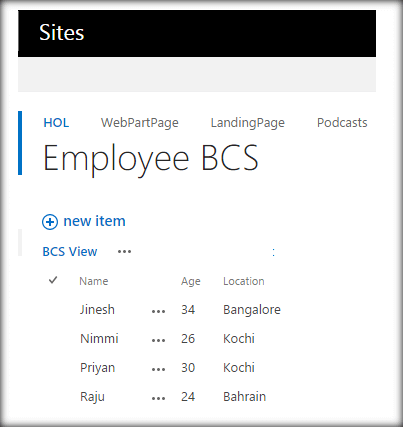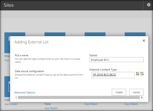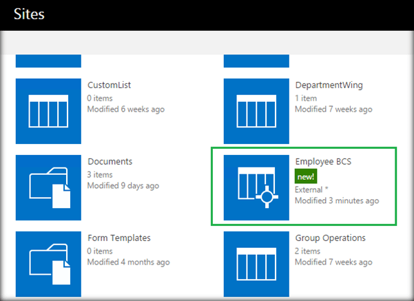 Thus a new external list of the name ‘Employee BCS’ has been created.