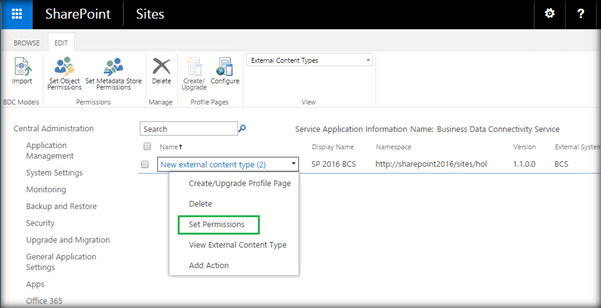 Now let’s head over to the SharePoint Service Applications page and select the ‘Business Data Connectivity’ Service Application.