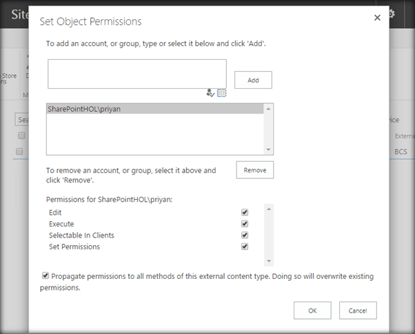 Right click it and select ‘Set Permissions’. Add the users to the external content type object.