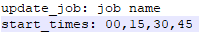 Below is the JIL to update job, it should run every 15 minutes. This can be set to custom times along with days_of_week & start times attributes. Ex: Every Tuesday the job should run at 13.30.