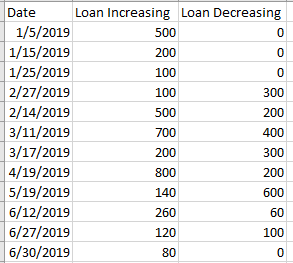 First, let’s find out the normal Loan Balance which is the difference between the Increasing Loan Balance and Decreasing Loan Balance.