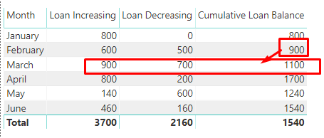 Example: For the month of March, the Cumulative Loan Balance should be like,