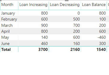Loan Balance = SUM(Sheet1[Loan Increasing ])-SUM(Sheet1[Loan Decreasing])