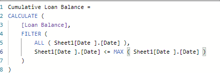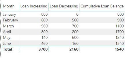 Now, in the end, I need a result for Cumulative Loan Balance something like the following screenshot.