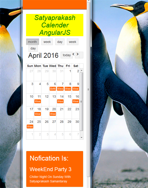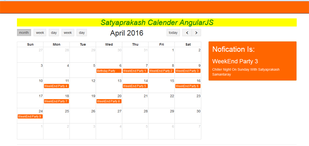- <h2 style="background-color: Yellow;color: green; text-align: center; font-style: oblique">Satyaprakash Calender AngularJS</h2>