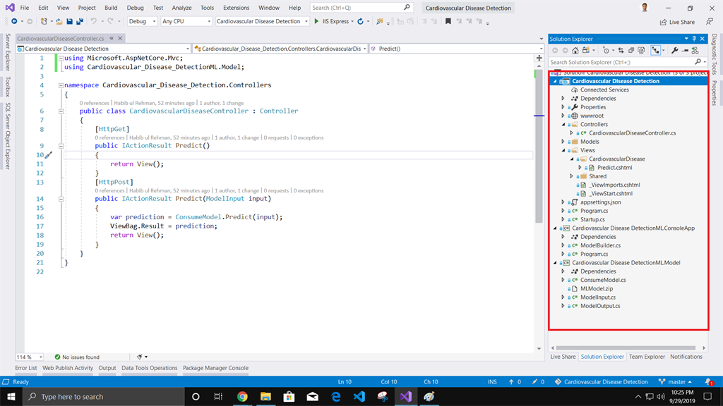 So in this article, we learned how to build, train, evaluate and consume the Cardiovascular Disease Detection model using ML.NET Model builder and consume the resultant model into ASP.NET Core MVC application. Here is the overview.