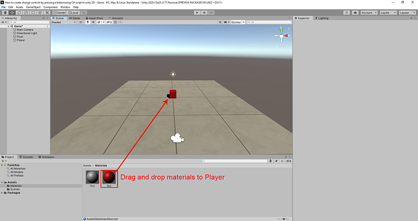 Select the player material and let's give it red color.