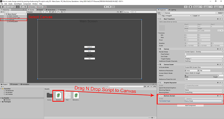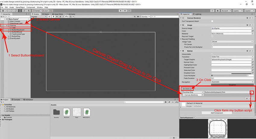 It's the canvas object. now in the canvas object, I can pick buttons. Now we will call the on Canvas using the keyboard button from my Buttons script.