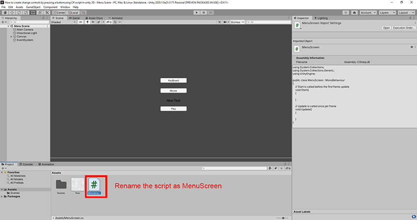 Rename the script as Menu Screen