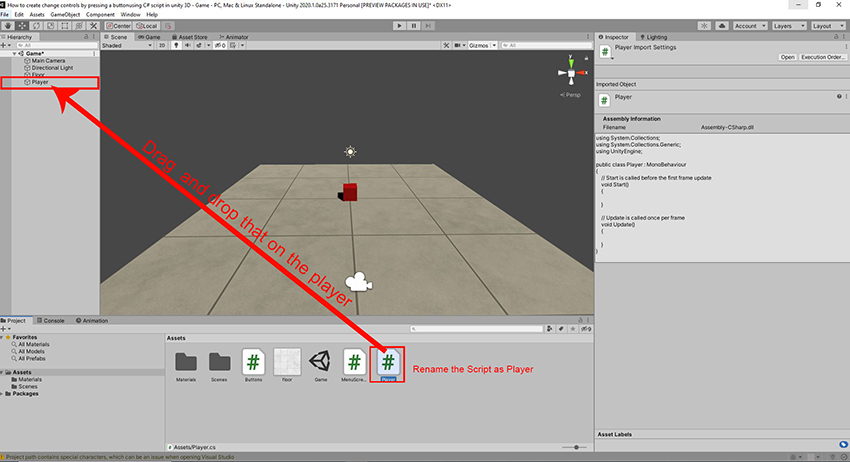 Rename the script as Player, we'll drag and drop that on the Player.