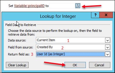- Then store the Created By user’s principal id in ‘principalId’ variable.