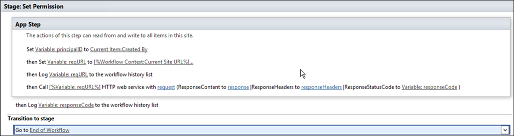 Fig 5: Stage of the SP 2013 WF for assigning permission