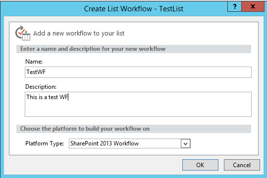 - Now we have to provide the workflow name and selecting the platform type which would be SharePoint 2013 Workflow as that we wanted to create. The Description part is not required, but we can provide some details on this workflow.