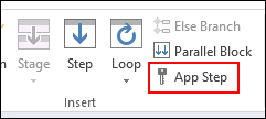 - Now select the app step option from the above ribbon as shown in the below image (fig 3). I'm hoping you have already activated the App Step with elevated permission as described above.