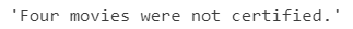 query = "How many movies were not certified?"