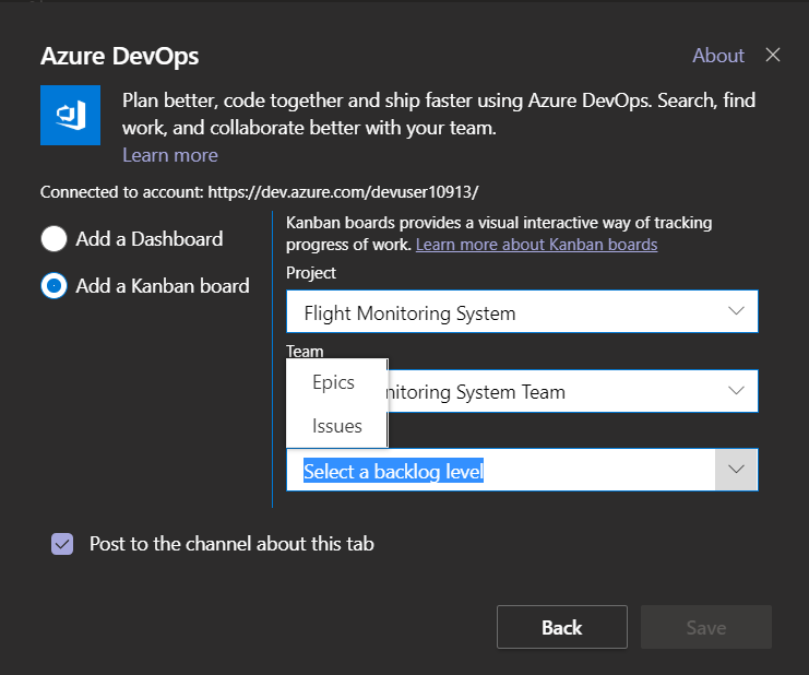 - Go to the MS Teams channel where you want to link Azure DevOps