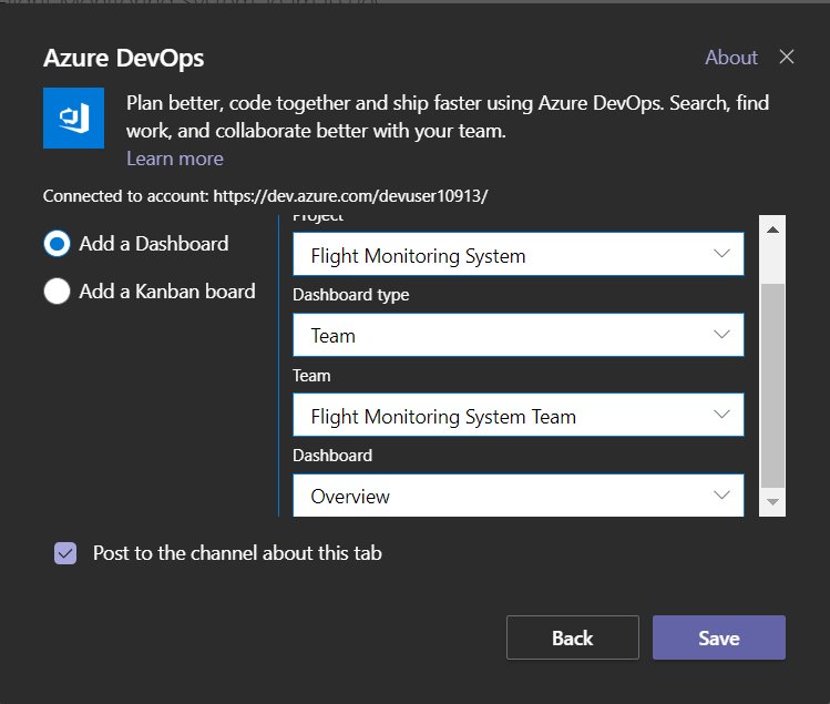 - Any changes made to the Dashboard in Azure DevOPs will be reflected in teams
