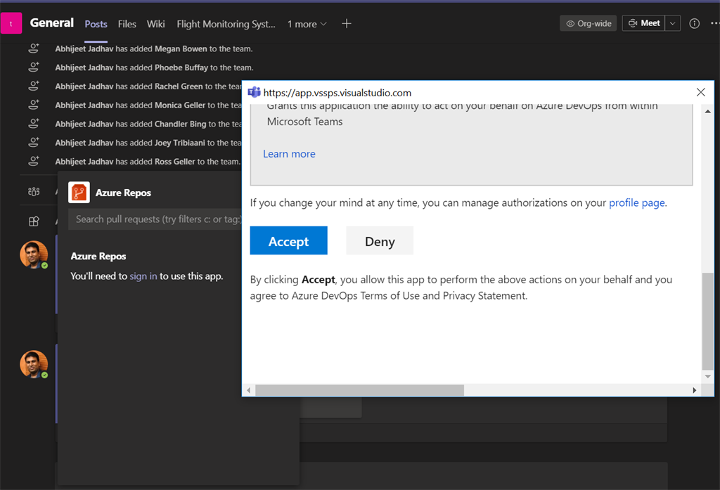 Steps to configure ChatOps using Azure DevOps app in MS Teams