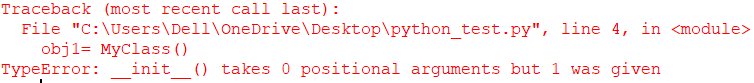 Now you must be wondering that in above example __init__ has 3 arguments but when object creation is done, obj1=MyClass(‘a’,’b’) – this statement have only 2 arguments. Why?