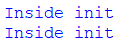 As you can see in the above example, both the objects will print the same value this is because init have only one argument i.e. ‘self ‘ and only one print statement ‘Inside Init ‘ and a we know that for every object ‘ init ‘ is called once.