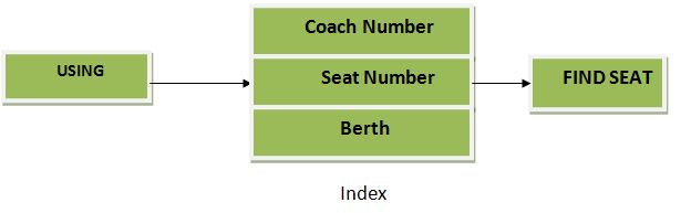 Train Ticket Confirmation System is a good example of index because the confirmation details have coach number, seat number, and berth details. Using the given details, we can find our seat faster and more easily. If we do not have these details, we need to check each coach, which will take more time.