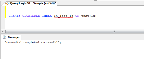 CREATE CLUSTERED INDEX IX_Test_Id ON test(Id)