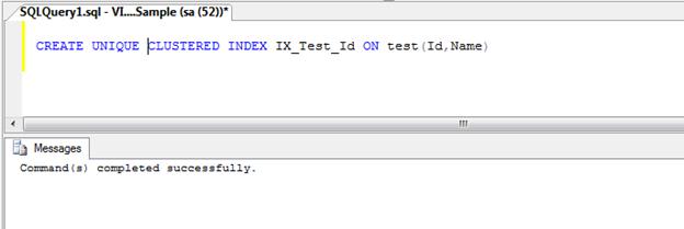 CREATE UNIQUE CLUSTERED INDEX IX_Test_Id ON test(Id,Name)