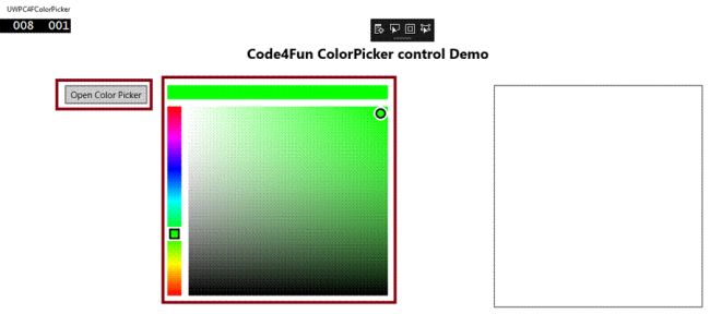 Now, you have successfully tested Code4Fun ToolKit – ColorPicker in Visual C# - UWP environment and changed the border background color with the button control.